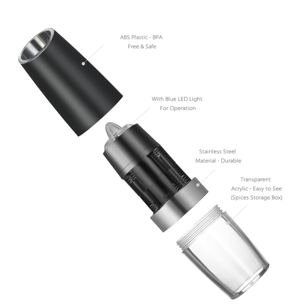 Blue LED Light: No cheap-looking and boring white light anymore, blue light is not only bright but also gentle. When you have dinner with your family or loved ones, this gentle blue light adds a warm and romantic atmosphere. The blue LED light will turn on automatically during use, and you can see exactly where your seasoning is landing.